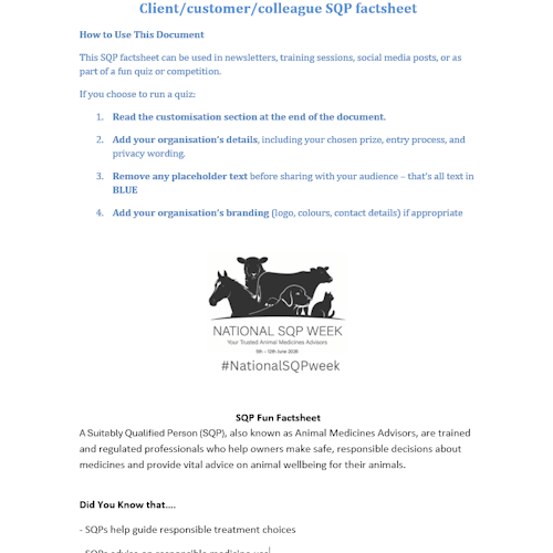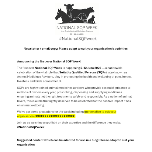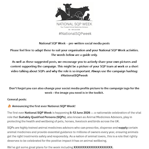 Get ready for the first-ever National SQP Week (5–12 June 2026) — a nationwide celebration of the vital role SQPs (Animal Medicines Advisors) play in safeguarding the health and wellbeing of livestock and pets across the UK. Although SQPs are highly trained and qualified professionals, many people who interact with them don’t fully understand their expertise or the benefits they bring. This campaign aims to change that.