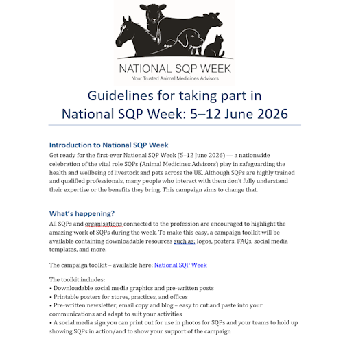 Get ready for the first-ever National SQP Week (5–12 June 2026) — a nationwide celebration of the vital role SQPs (Animal Medicines Advisors) play in safeguarding the health and wellbeing of livestock and pets across the UK. Although SQPs are highly trained and qualified professionals, many people who interact with them don’t fully understand their expertise or the benefits they bring. This campaign aims to change that.